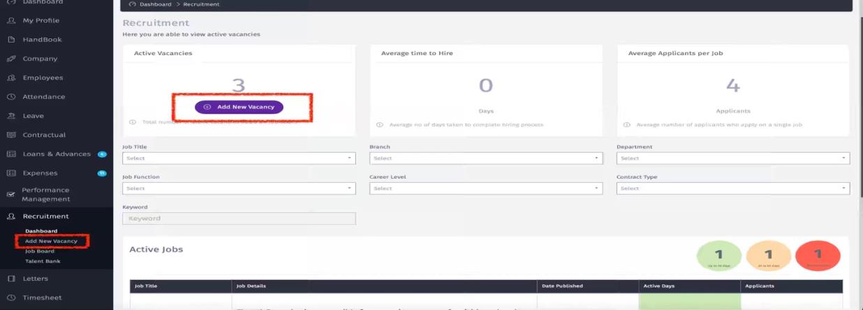 (2) Clicking on “Add new Vacancy” on the sidebar menu.