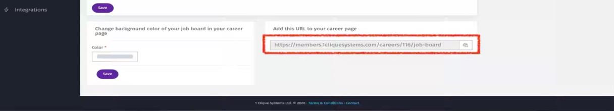 a Link your career page in the company website with your company unique URL in 1CLIQUE Job board. b This will allow the candidate to perform the following activity from the company website once they click on career page: i Create a candidate account. ii View all jobs posted on your 1CLIQUE Job Board. iii Apply for a job.
