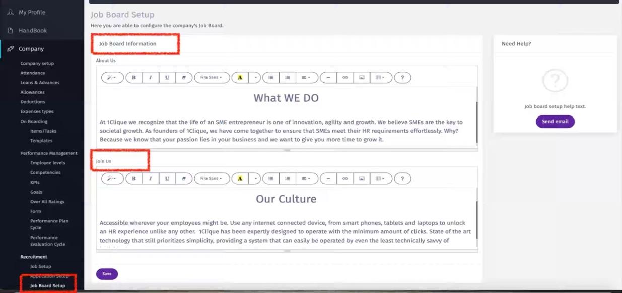 Here you are able to configure the company's Job Board Elements.
