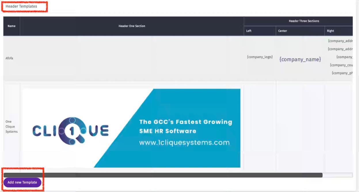 iii Template Header: This dropdown list will contain all the header templates that were created in the Header Template Section.